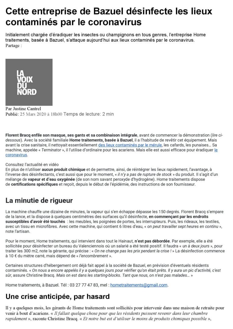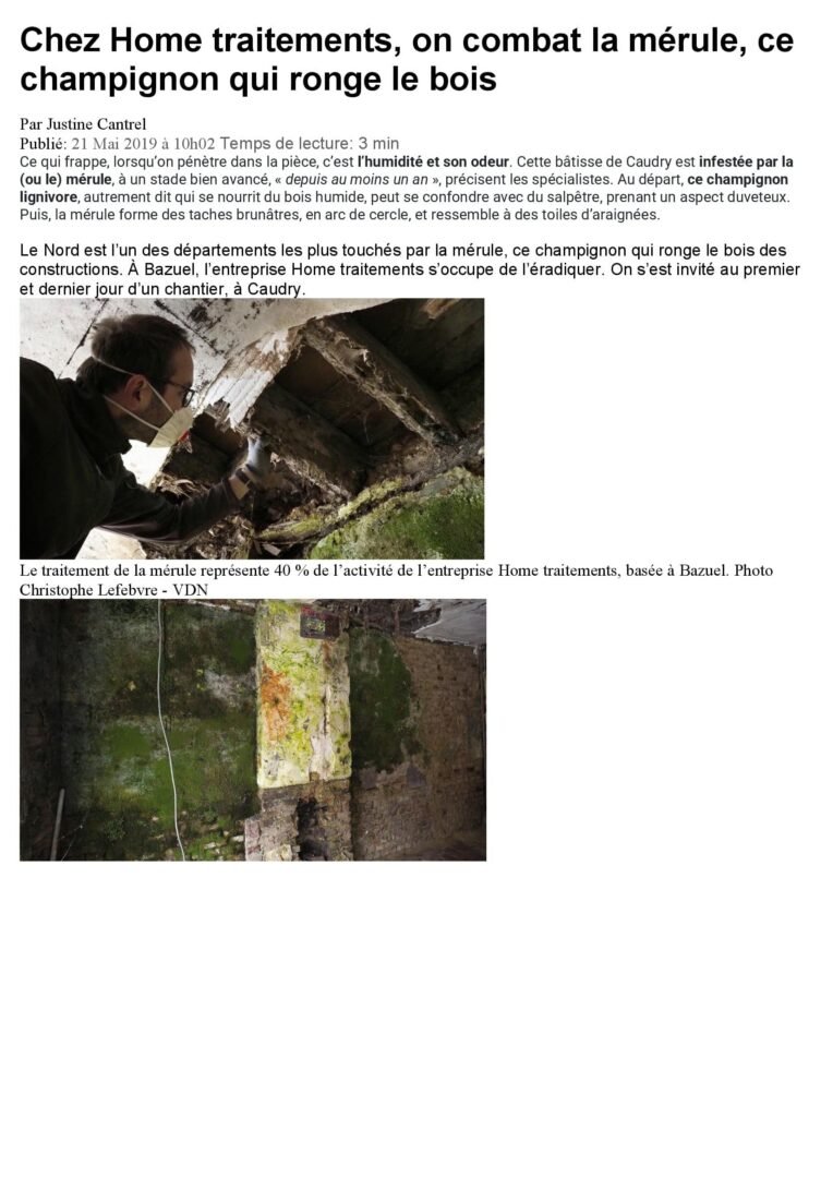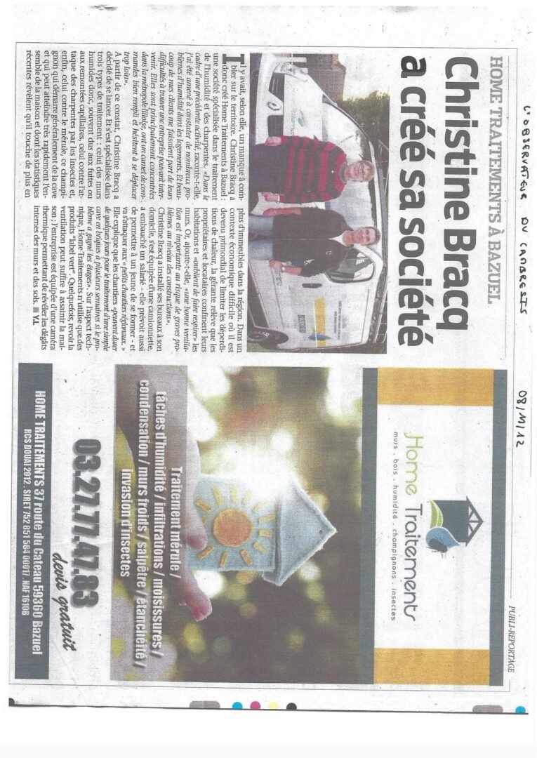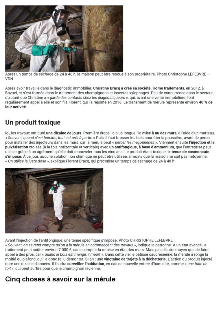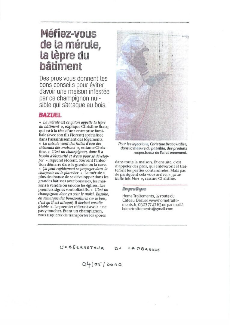 Depuis 2012, Home Traitements accompagne les propriétaires ( particuliers et professionnels) soucieux de préserver durablement leur habitat. Spécialisée dans le traitement de bois et de l’humidité, notre savoir-faire s’étend également à d’autres domaines complémentaires : traitement des champignons du bois, traitement des insectes xylophages, solutions contre l’humidité, aérogommage, entretien des bois, dératisation, désinsectisation et désinfection.